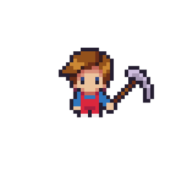 - Fully Animated actions of the character holding tools in all 8 directions as follows